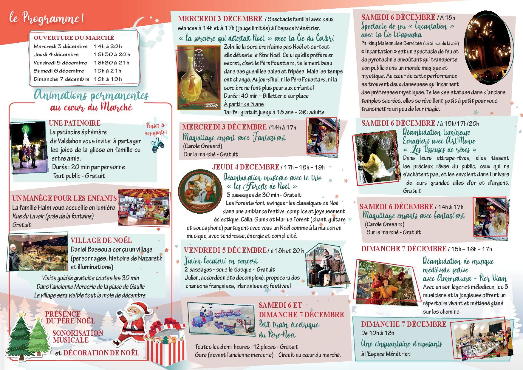 De nombreuses animations seront au programme dont une structure phare des marchés de Noël avec la patinoire installée au cœur du marché ainsi qu’un manège dont l'accès est toujours gratuit. Nouveauté : le petit train électrique du Père Noël samedi et dimanche !