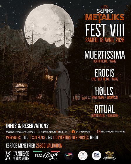 Festival de musique Métal Les Sapins Metaliks (musique Metal) à l’Espace Ménétrier à 19h. Infos et réservations en ligne : Facebook.com/lessapinsmetaliks ou asso.sapinsmetaliks@gmail.com
